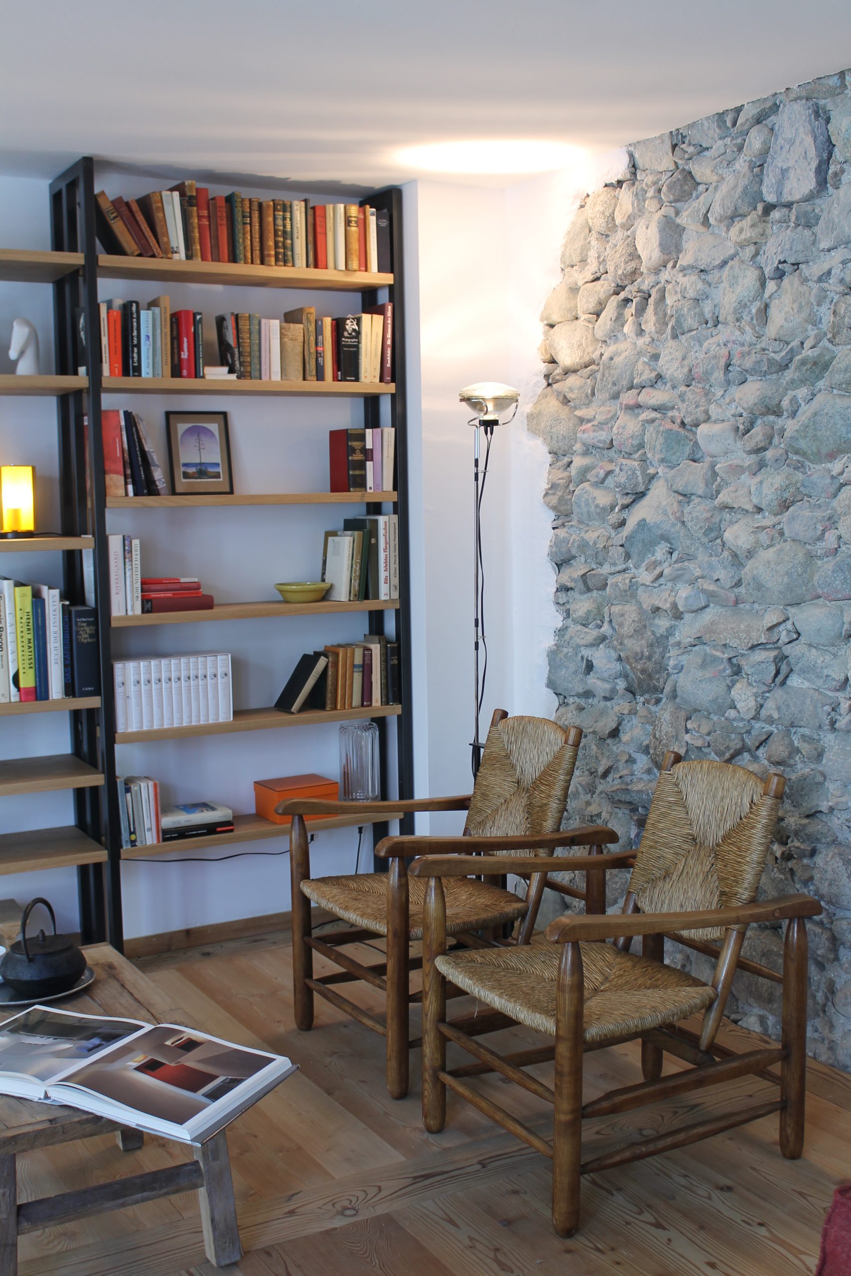 Questo elegante appartamento su due piani, situato in Svizzera, è stato ristrutturato in stile montagna, combinando il calore dei materiali naturali con il design contemporaneo.