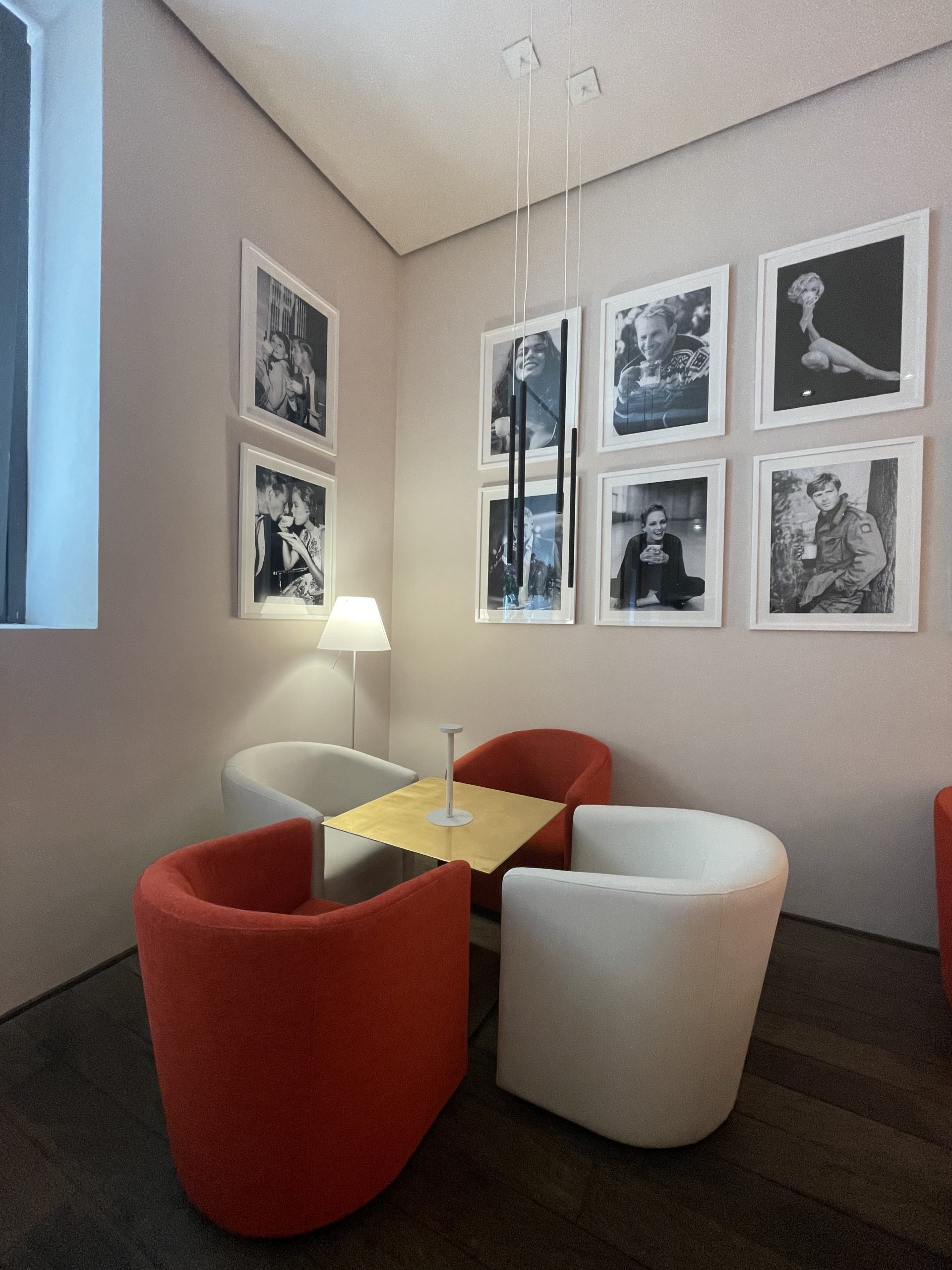 L’atmosfera dell’hotel è un perfetto equilibrio tra eleganza classica e modernità. I dettagli in foglia d’oro e la cornice rossa creano un ambiente accogliente e ricco di charme, mentre l’uso della paglia di Vienna e degli specchi al bancone bar aggiunge un tocco unico e sofisticato.